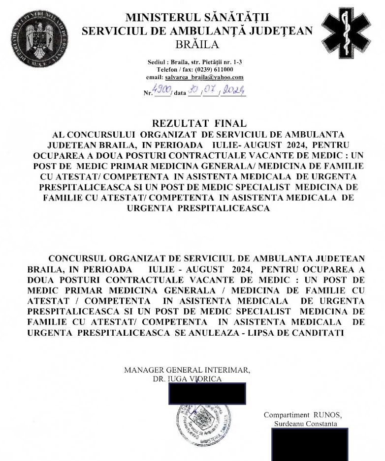 CONCURS PENTRU OCUPAREA 2 POSTURI