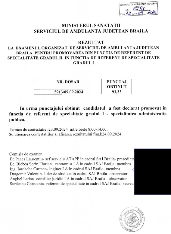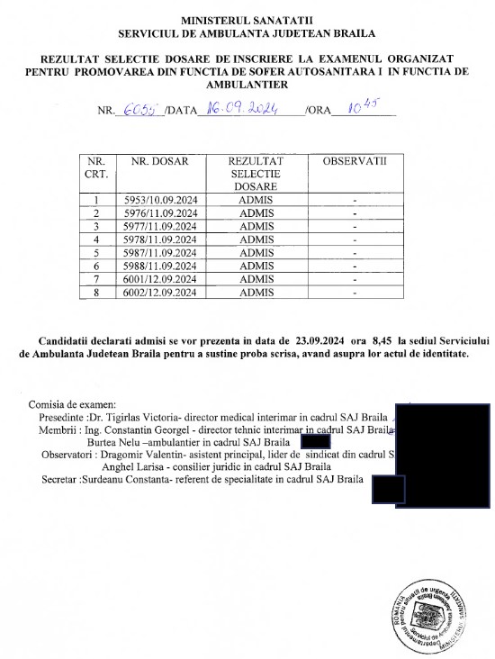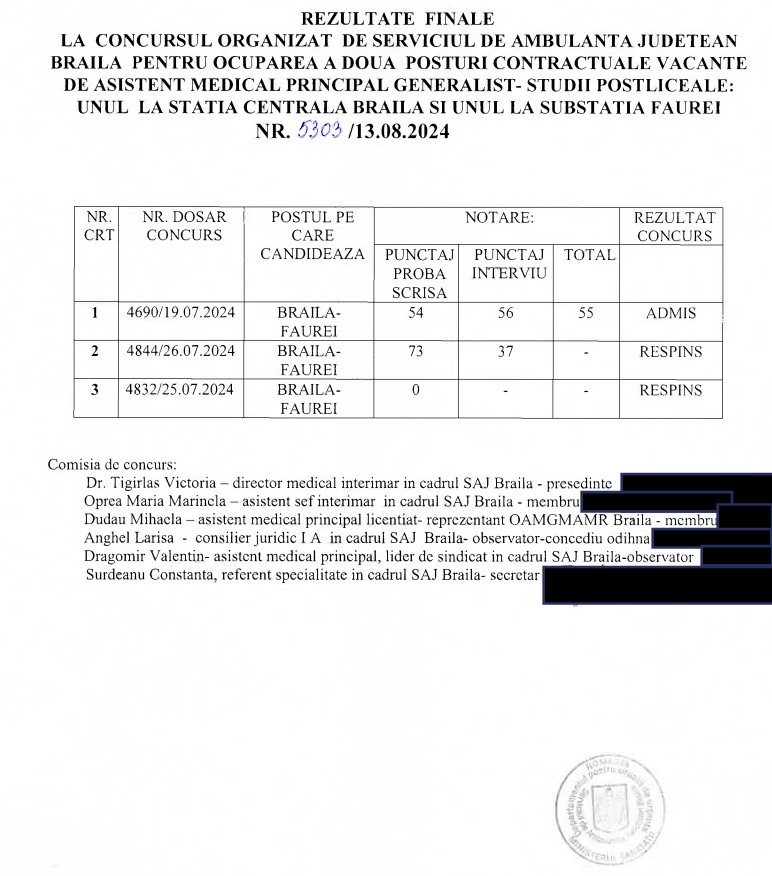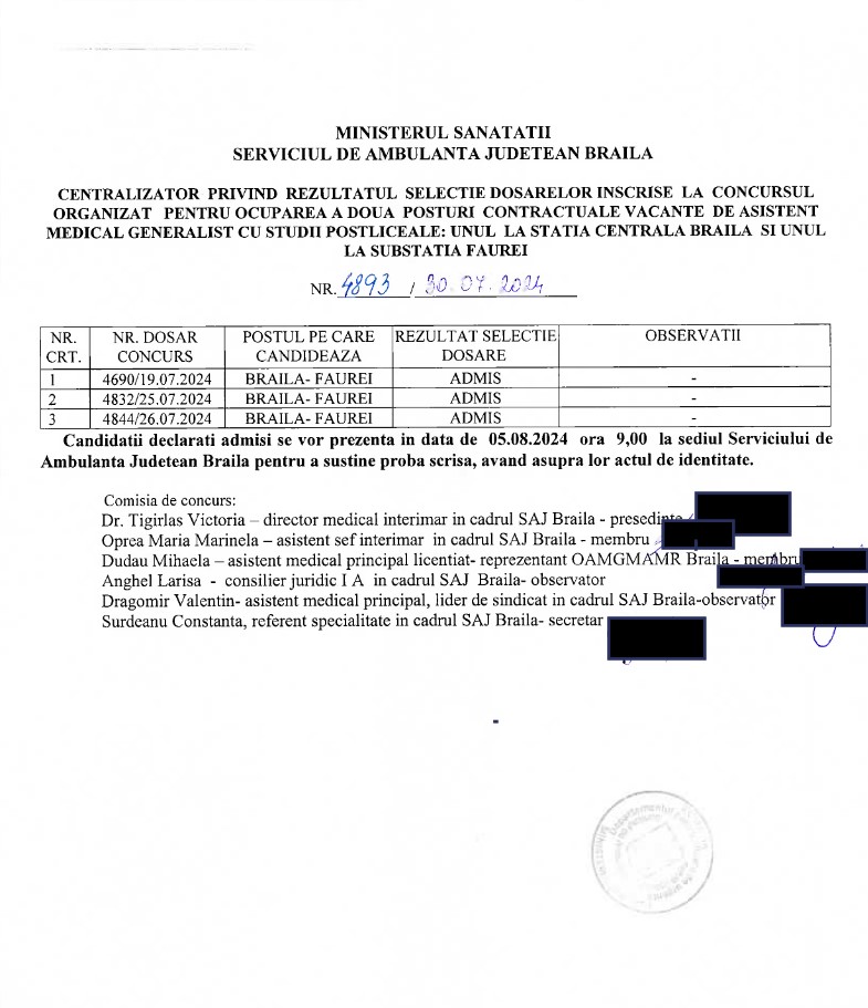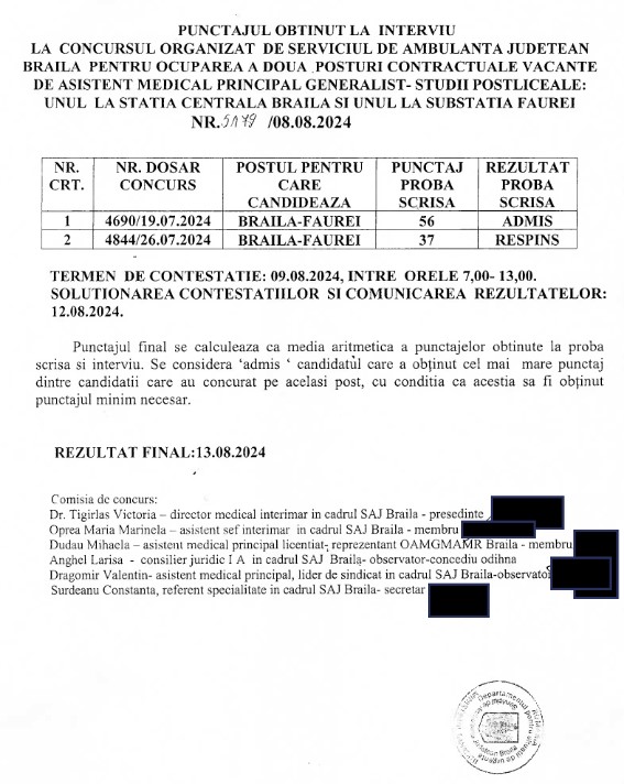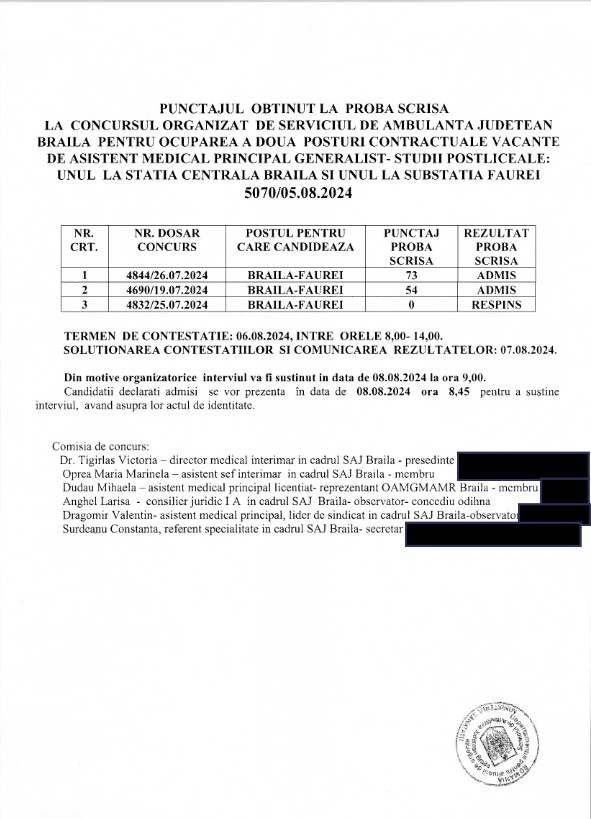 CONCURS PENTRU OCUPAREA 5 POSTURI